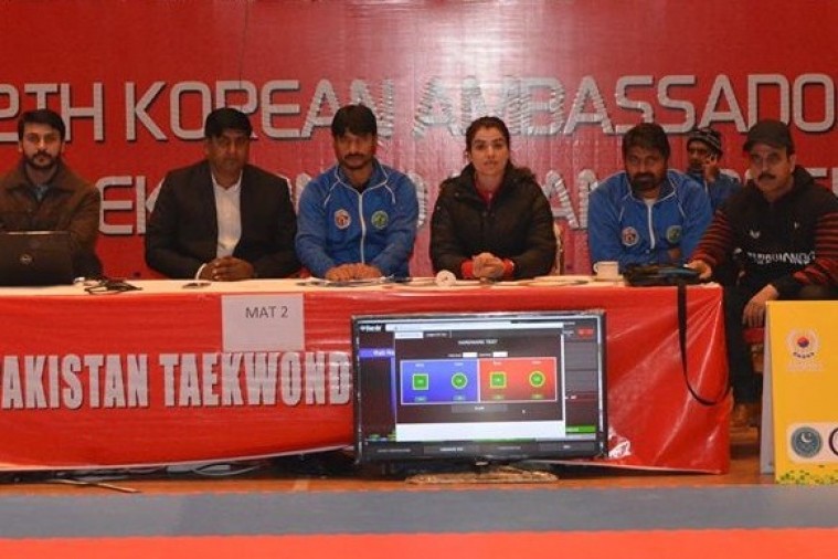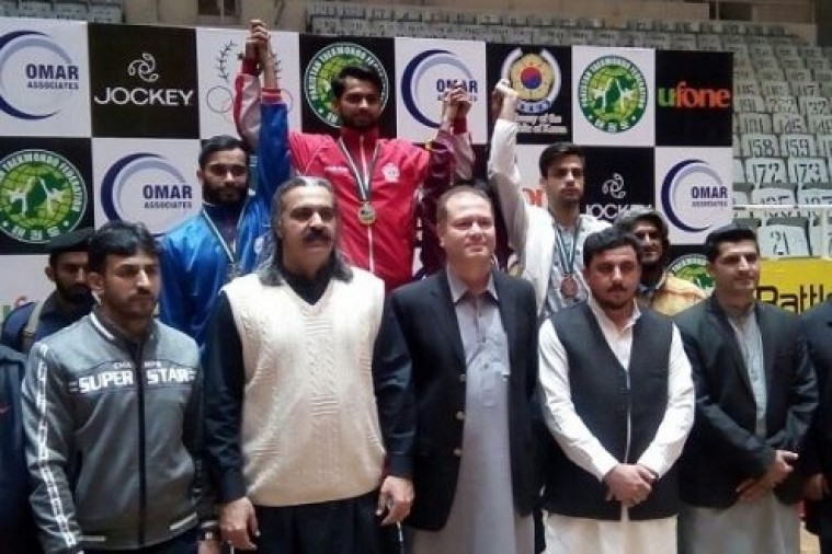 12th Korean Ambassador National Taekwondo Championship 2017 Liaquat Gymnasium, Pakistan Sports ComplexArmy’s Ejaz Ahmed won the goals medal under 68 Kg (Feather Weight) with 15 points while Jibran Asad from HEC secured the silver with 10 points and Rehmat Jamal from Gilgit-Baltistan with 06 points won the bronze medal. Salman from Pakistan Army with 15 points won the gold medal in under 74 Kg (Light Weight) category. Muhammad Bilal got 10 points and won silver while with 06 points Razi ud Din from Gilgit-Baltistan won the bronze.
