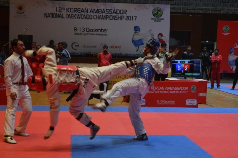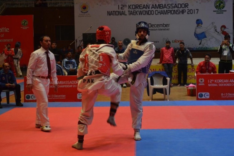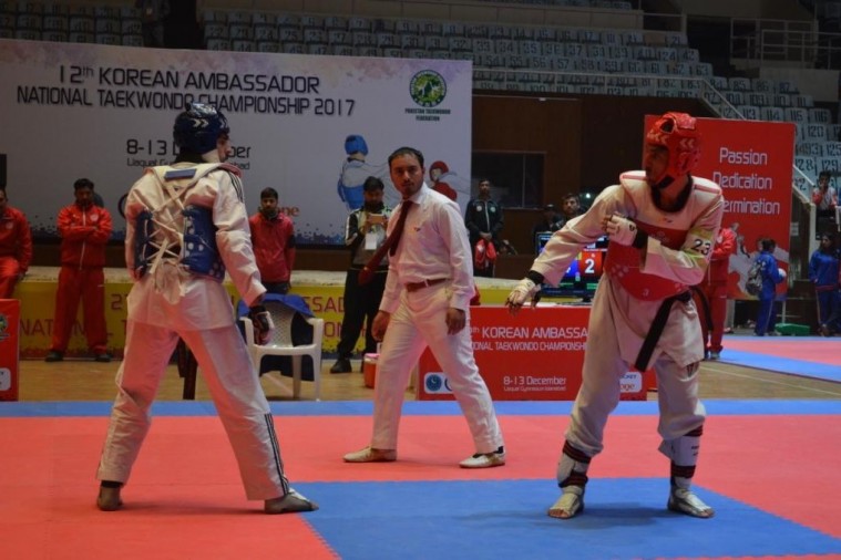 12th Korean Ambassador National Taekwondo Championship 2017 Liaquat Gymnasium, Pakistan Sports ComplexOn the third day of championship, 7 Male & Female Khyrougi events were finalized and out of them Pakistan Army secured 4 gold medals. Shahzaib from Balochistan won the gold medal in under 54 Kg (Fin Weight) category with 15 points. Shafeeq from Pakistan Army secured the silver medal with second position while Muhammad Owais from KPK earns bronze medal.