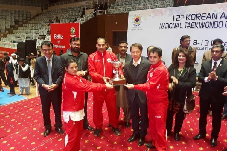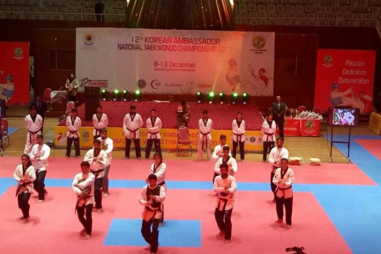 Pakistan Taekwondo Federation (PTWF) in collaboration with Korean Embassy Islamabad organized the five day long championship in which 1200 athletes, 120 Coaches & Managers, 50 Technical Officials and 40 National Referees participated in the event. This was the biggest event in the sports history of Pakistan where the teams of more than 70 Clubs, teams from all provinces including Gilgit Baltistan, FATA, Islamabad, Pakistan Army, Pakistan WAPDA, HEC and Pakistan Railways participated. In the closing ceremony of the event, National Taekwondo Team demonstrated and children from Air Foundation School performed before the audience.