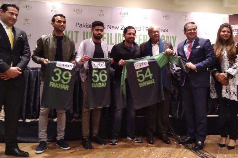 Pakistan team jersey for the T20I series to be played in New Zealand in January 2018 will be co-sponsored by Pakistan Telecommunication Company Limited (PTCL). This was announced at the kit unveiling ceremony held at the Gaddafi Stadium (Far End Pavilion) in Lahore.