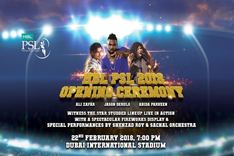 Opening ceremony of the third edition of HBL-PSL will start at 7:00pm where legendary Sufi singer Abida parveen along with American Pop musician Jason Derulo will perform at Dubai International cricket stadium.