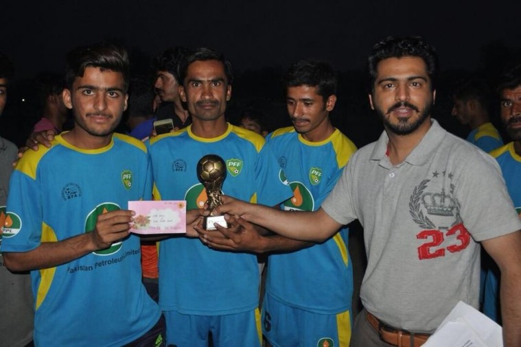 In the third match Dera Bugti (blue) defeated Kohlu (orange) by 2-0. In the 7th minute of first half Ahmed Ali scored the beautiful goal while in 88th minute of second half M. Younis scored the second goal for Dera Bugti. Ali Ahmed from Dera Bugti get the man of the match award as his team thrashed Kohlu with a margin of two goals in another one-sided affair.