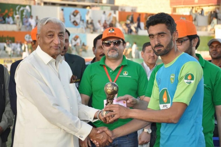 Then the teams were awarded penalty kicks followed by running time penalties. Quetta’s goal-keeper Javed Akhtar also the Man of the Match defended the last running penalty kick against Chaman and won the match withscores of 6-5 at their home ground amid a jam-packed audience at Malibagh Stadium.
