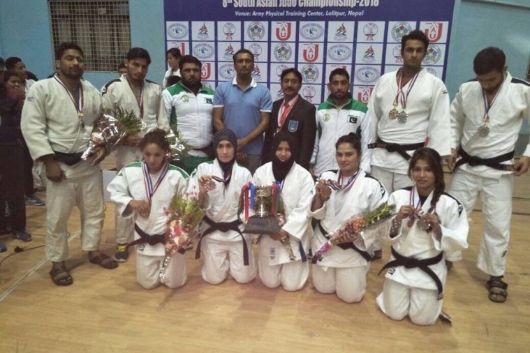 An extraordinary performance by Pakistani men, women judokas brought Pakistan once again in spotlight as Green Shirts clinched the second position in the 8th South Asian Senior Judo Championship 2018. Pakistan won 2 gold, 3 silver and 3 bronze in the individual categories while bags second spot in men and women events to take overall second position in the competition.