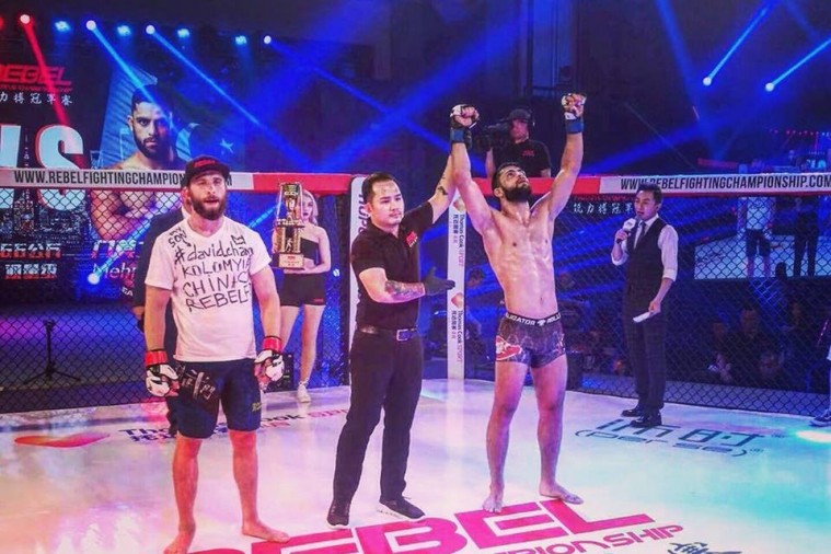 Pakistani MMA fighter Mehmosh “The Renegade” Raza defeated IGOR Grytskiv of Ukraine at the Rebel FC-7 Fight for Honor featherweight class in Shanghai, China.