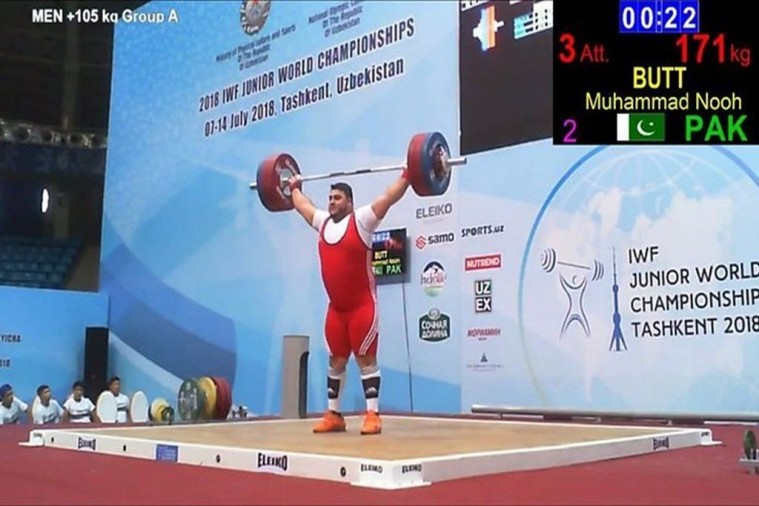 Overall eighteen weightlifters participated in +105kg weight event where Gujranwala’s weightlifter Muhammad Nooh Dastgir Butt grabs gold medal in weightlifting with a total score of 399 in IWF Junior World Championship at Uzbekistan Sport Complex, Tashkent city Uzbekistan.