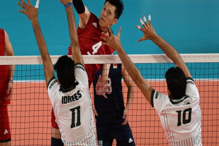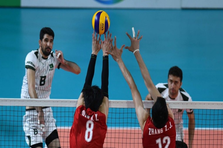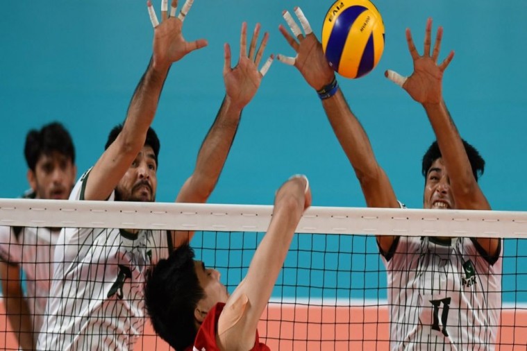 18th Asian Games 2018 Gelora Bung Karno Main Stadium, JakartaPakistan grasped three sets 28-26, 25-19, 18-16 victory over China in their semi-final for 7th to 12th position in the Volleyball competition.