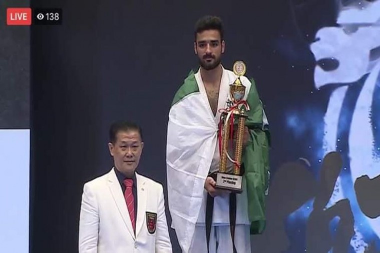 Usama Arif a student of AJK Shinkyokushin Karate Academy Mirpur Azad Kashmir, displayed outstanding performance as he succeeded to get the commanding position where he tried his best to fight to won Silver in Men’s-85kg category.