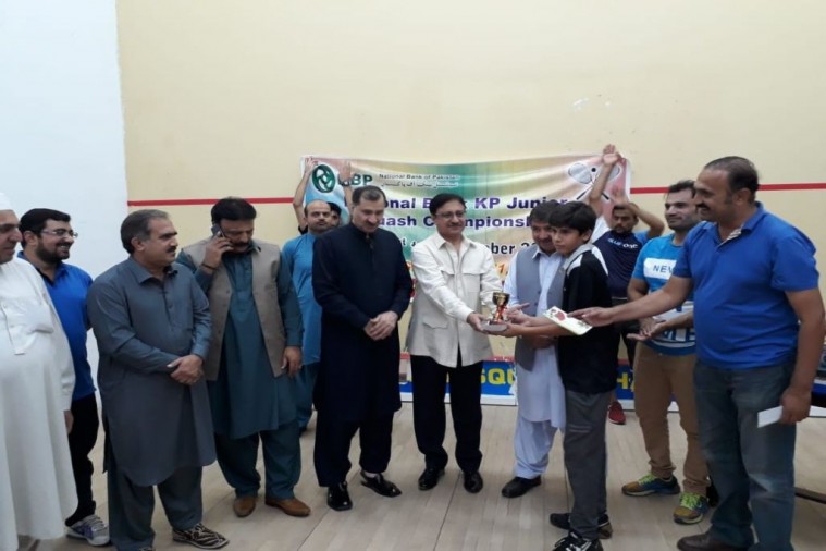 Khyber Pakhtunkhwa All Pakistan Junior Squash Championship 2018 PAF Hashim Khan Squash Complex in Peshawar.The players of Khyber Pakhtunkhwa comprising Hamza Sharif, Abbas Nawaz, Humam Ahmad, Abdullah Nawaz, Maira Khan and Nimra Aqeel made a clean sweep of winning titles of their respective age group in the 9th National Bank Junior Squash Championship which concluded here at PAF Hashim Khan Squash Complex.
