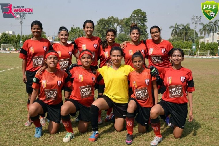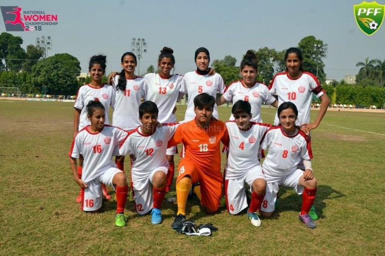 National Women Football Championship 2018 Lahore College for Women University and Model Town Football Academy GroundThe Reds dominated throughout the game to go at top by thrashing opponent Karachi United football team on 10-0 score-line.