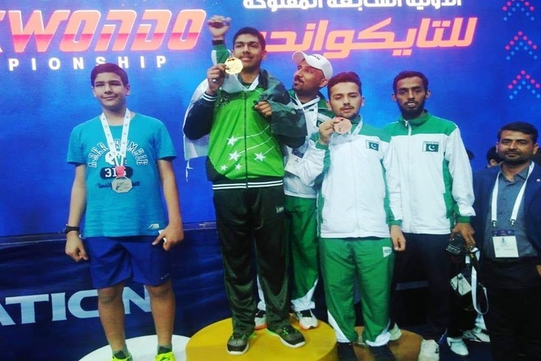 The other two taekwondo players, Arif and Saad got bronze medals in -28 KG and -49 KG weight categories respectively.