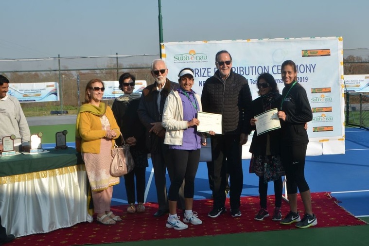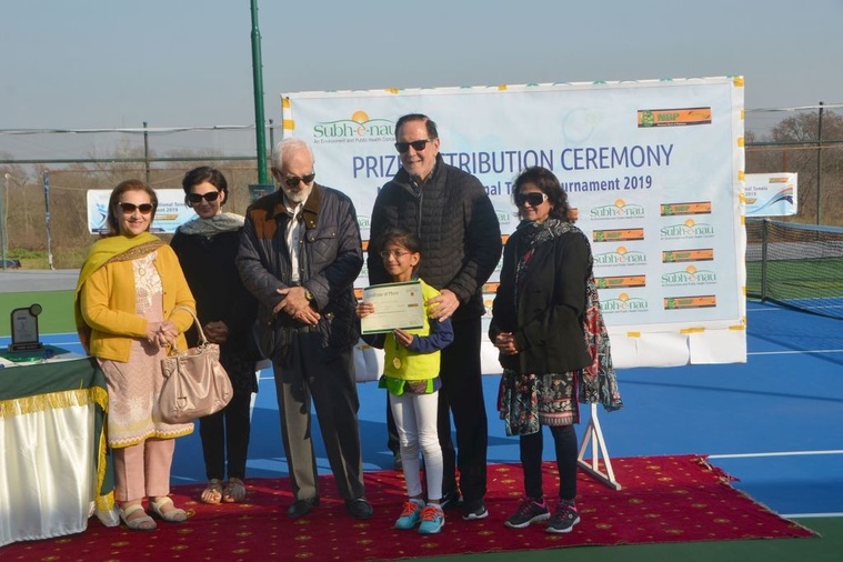 Senator Salim Saifullah Khan, President Pakistan Tennis Federation, distributed medals and certificates among players after Ladies Singles final. speaking on the occasion, he appreciated SN for back to back exclusive ladies tennis events and said that PTF fully supports its activities. Subh-e-Nau Chairperson Shahida Kauar Farooq, former Member National Assembly Humayun Saifullah Khan were also present on this occasion.