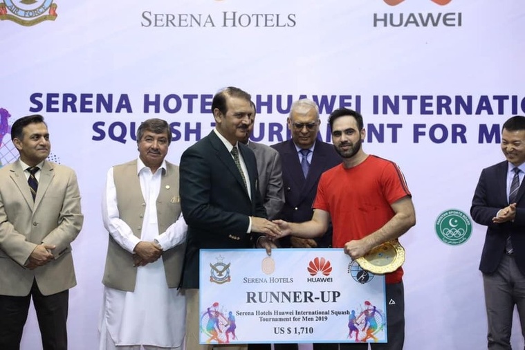 Former Pakistan no. 1 Farhan Mehboob fetch US $1,710 & runner-up trophy of Serena Hotels Huawei International Squash Tournament