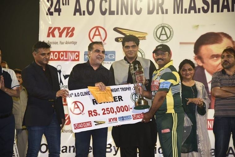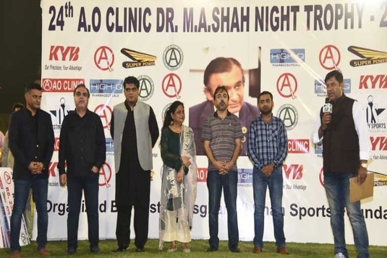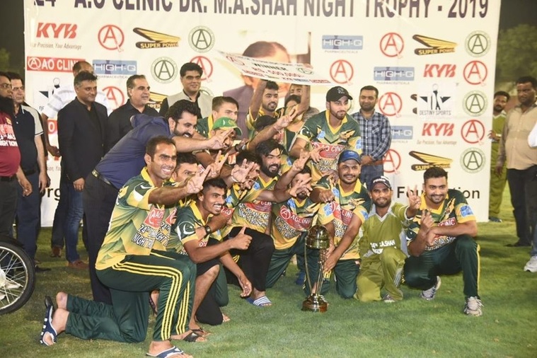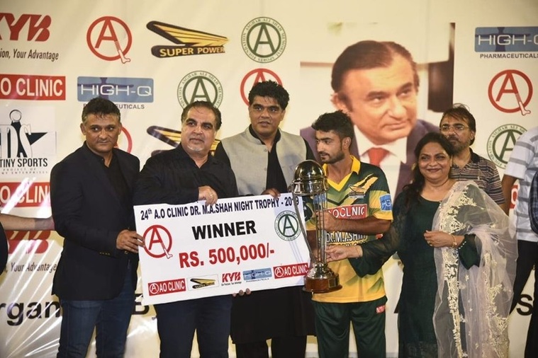 A O Clinic defeated Qasmi Gymkhana to retains the title of Dr M A Shah Night Trophy Cricket Tournament 2019 at the Asghar Ali Shah Stadium, Karachi.