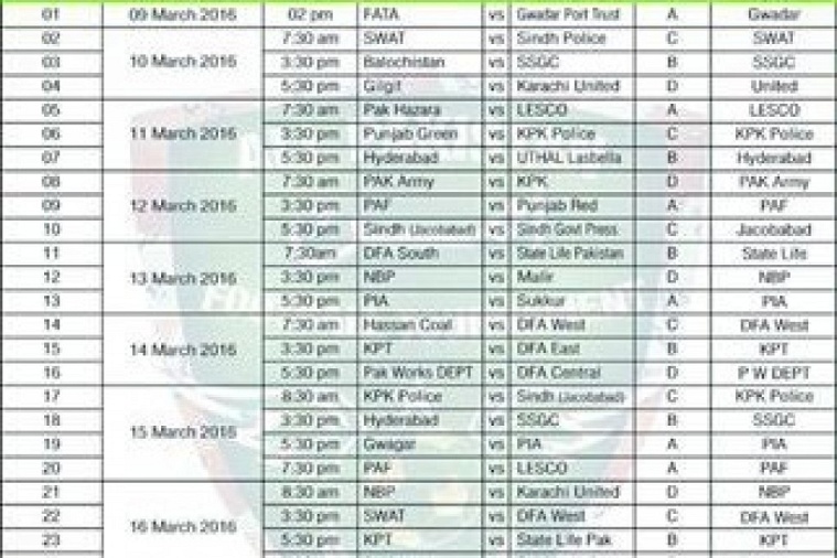 The other quarter-finalists are Karachi Port Trust (KPT), DFA West, Sui Southern Gas Company (SSGC) and Khyber Pakhtunkhwa Police.