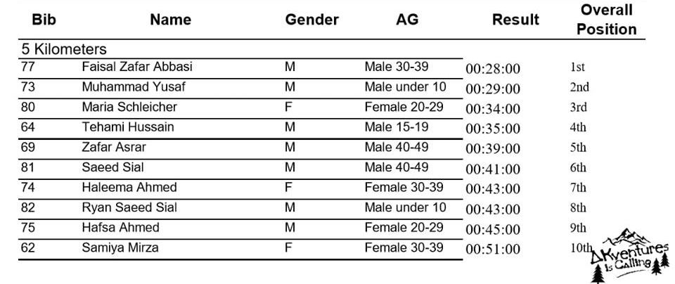 5 Kilometers Race: