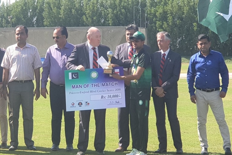 Pakistan's blind cricket team defeated England by 9 wickets in the first T20 at Ajman Oval cricket ground UAE.