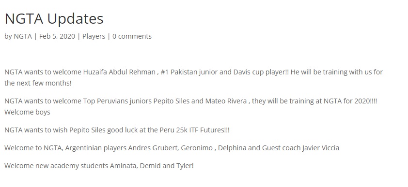"NGTA wants to welcome Huzaifa Abdul Rehman , #1 Pakistan junior and Davis cup player! He will be training with us for the next few months!," the NGTA said on its website.The NGTA is located at Longwood Athletic Club in Sarasota, Florida and is dedicated to the junior and professional tennis players and their goals.