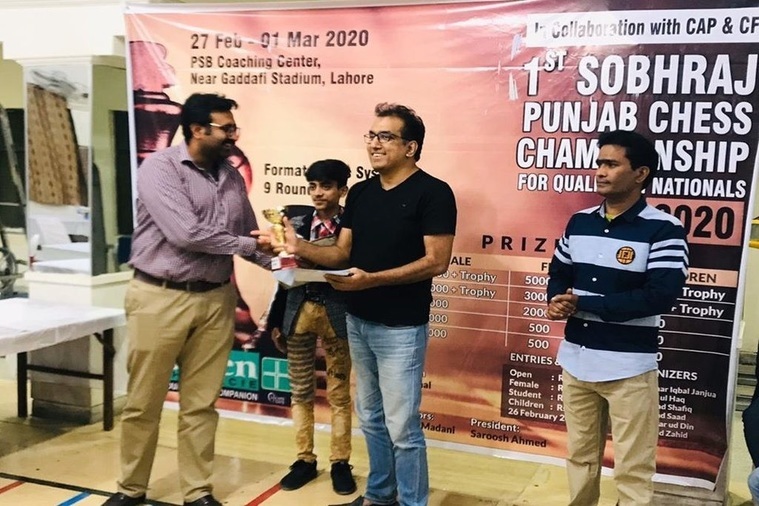 Zohaib Gillani and Mehak Gul secured first position in their respective categories of 1st edition of SobhRaj Punjab Qualifying Chess Championship for Nationals 2020 at PSB Caoching Centre Near Gaddafi Stadium, Lahore.