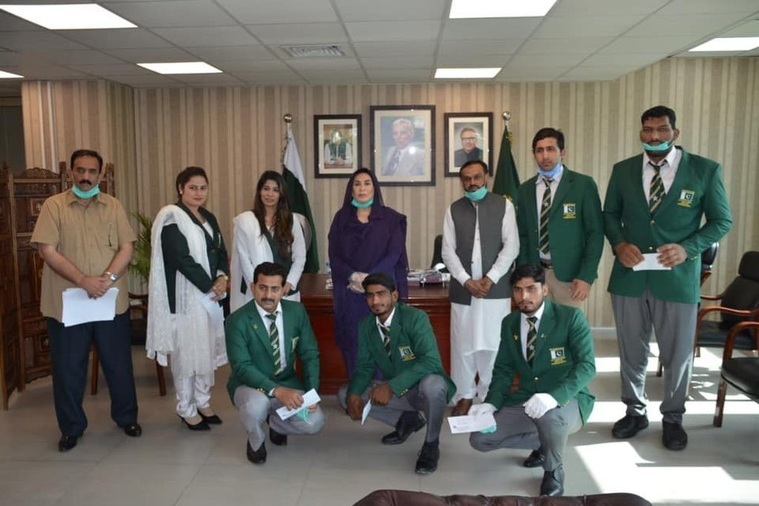 Federal Minister for Inter-provincial Coordination (IPC) distributed cheques among the members of Pakistan Judo and Karate teams for winning medals at the South Asian Games last year.