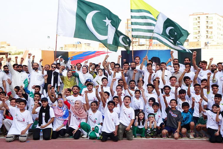 Pakistan No. 1 junior squash player Komal Khan and South Asian gold medalist in Karate Murad Khan, both hailing from Khyber Pakhtunkhwa, carried the national flags of Pakistan and Kashmir during the start of the marathon.