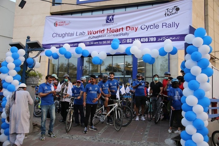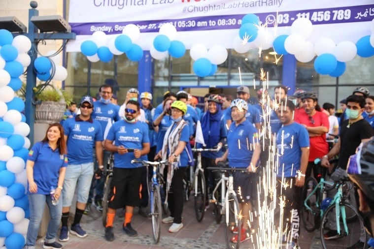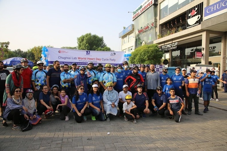 More than 140 cyclists participated in the Chughtai Lab World Heart Day Cycle Rally to emphasize and promote the importance of physical activities to prevent heart diseases.