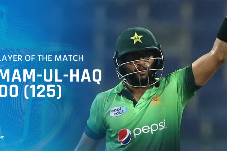 Imam scored 100 while, Fakhar Zaman scored 29 runs and Babar Azam got out at 30 runs. Mohammad Hafeez 34* and Sohaib Malik 0* remained not out.