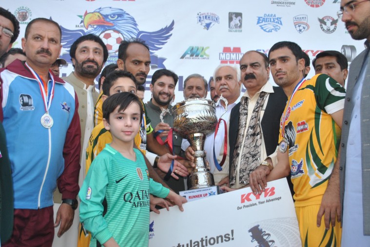 At the end of the final, Political Agent Khyber, Khalid Mehmood gave away trophies and cash prizes of Rs. 0.5 million to the winning captain Atiq Shinwari and Rs. 0.3 million to the runners-up team. Saqib was declared as best goal-keeper and was awarded Rs. 25000/- cash, Samad and Mansoor were jointly declared best scorers as both scored four goal each were awarded Rs. 25000. Hamza was declared as the most emerging and best player of the tournament and was awarded Rs. 25000. Fair play trophy was awarded to Kurrama Shaheen of Kurram Agency.