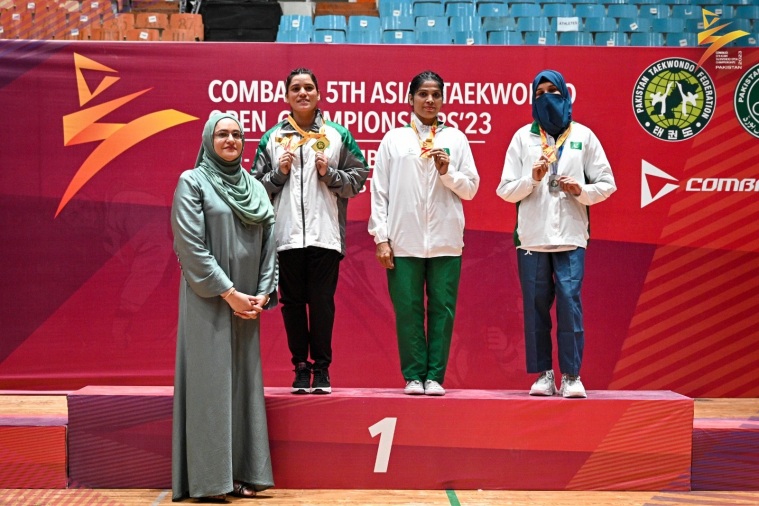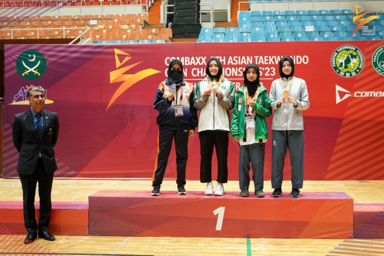 At the Asian Open Taekwondo Championship held at the Liaquat Gymnasium in the Pakistan Sports Complex, Pakistani athletes displayed remarkable performances in the poomsae discipline on a Wednesday. National representatives secured nine gold medals out of ten bouts, while Nepal claimed a single gold medal.