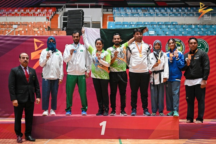 In Poomsae's U-30 mixed pair event, Pakistan's Flower Zaheer and Anas clinched the gold with a score of 7.48 points. Ammar and Fatima from the Higher Education Commission received the silver medal with 6.71 points, while Sindh's Shafi and Ulma secured the bronze with a score of 6.43. Zain Hasan and Latif from Nuces University also earned a bronze medal with a score of 6.39.