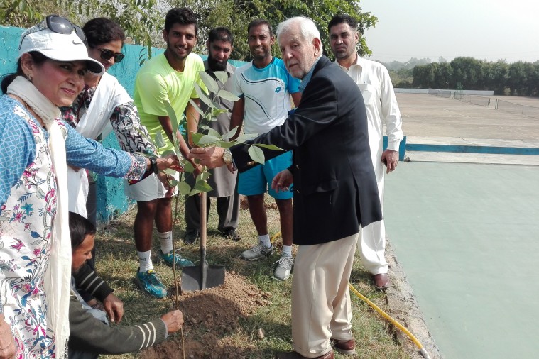 Aqeel Khan and Muzamil Murtaza also planted a tree after the match at tennis federation complex on the initiative of Subh-e-Nau which is working for Environment and Public Health Concern.