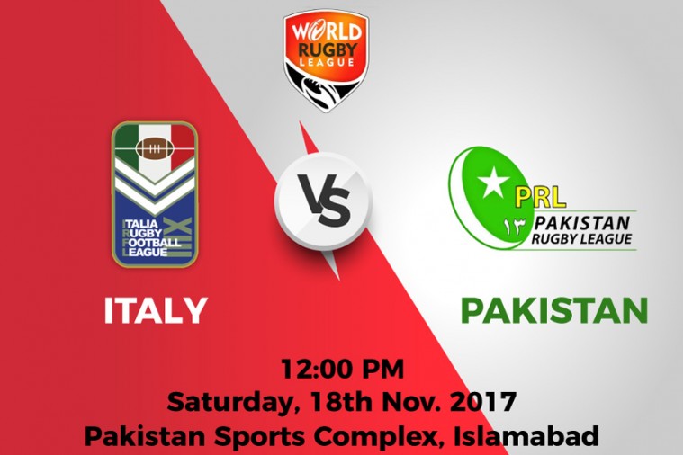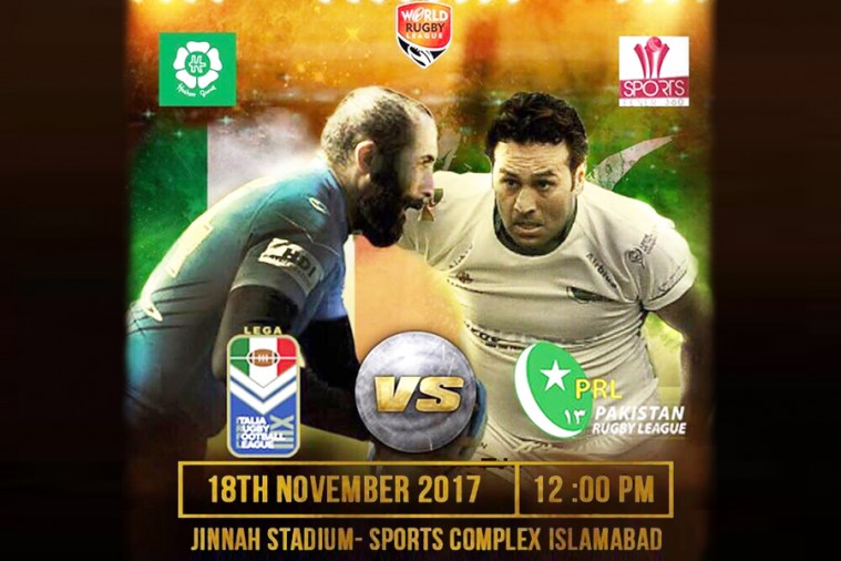 Pakistan Rugby League team will play a match against the National side of Italian Rugby team on Saturday 18th November at Jinnah stadium of Pakistan Sports Complex, Islamabad.
