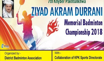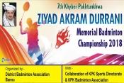 The 7th Khyber Pakhtunkhwa Ziyad Akram Durani Memorial Badminton Championship 2018 is schedule to be held form 29th Nov to 2nd Dec at Bannu.