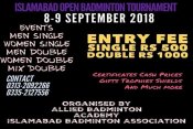 - 2nd Islamabad Open Badminton Tournament from 8th September