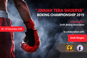 "JINNAH TERA SHUKRYA" Boxing Championship 2019 will be organized by Sindh Boxing Association (SBA) which will be held from 03rd to 15th December at Pakistan National Boxing Club People's Sports Complex in Karachi.