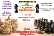 All Pakistan Chess Championship 2019 will be organized by AIMC Chess Club on the 1st of May which will continue till the next day at Gymnasium Hall, Allama Iqbal Medical College in Lahore.