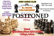 All Pakistan Chess Championship which was going to be held on 1st & 2nd May in Allama Iqbal Medical College Lahore has been postponed by the organizers.