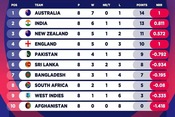 Australia and India qualified for the semifinal while England, New Zealand and Pakistan are the three teams who are now fighting for the two remaining spots.