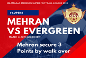 Mehran FC got a direct win in their first match as the opponent team did not show up at the ground in the 2nd weekend match played into Islamabad Super Football League 2019, being held at different football grounds within Islamabad.