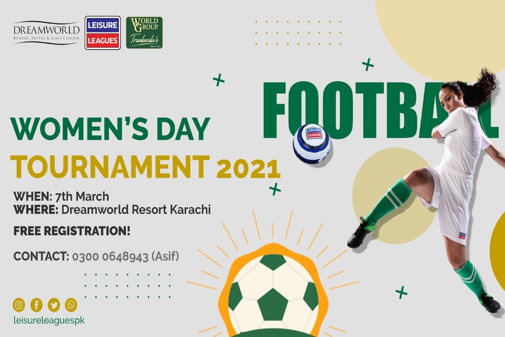 Leisure Leagues PK and World Group in collaboration with Dreamworld are organizing a Women's Football tournament 2021 on 7th March at Dreamworld Resort, Karachi.