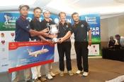 Javed A Khan of Gymkhana after overcoming the veterans Shoaib Bokhari and Imran Ahmed wins the 35th Punjab Amateur Golf Championship title at Lahore Gymkhana Golf course.