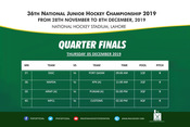 The quarterfinals of the ongoing National Junior Hockey Championships 2019 will be held on 5th Dec at the National Hockey Stadium, Lahore.