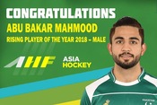 The Asian Hockey Federation (AHF) named Pakistan hockey player Abu Bakar Mahmood Rising Player Of The Year (2018).