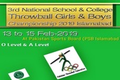 Various Schools and Colleges have been invited to take part in the 3rd National School & College Throwball Championship which is scheduled to be held from 13th to 15th February 2019 at Pakistan Sports Board (PSB) in Islamabad.