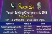 Pakistan Tenpin Bowling Federation is organizing the Ramzan Tenpin Bowling Championship from 25th May to 27th may 2018 at Leisure City Bowling Club 6th floor Safa Gold Mall F-7 Markaz Islamabad.